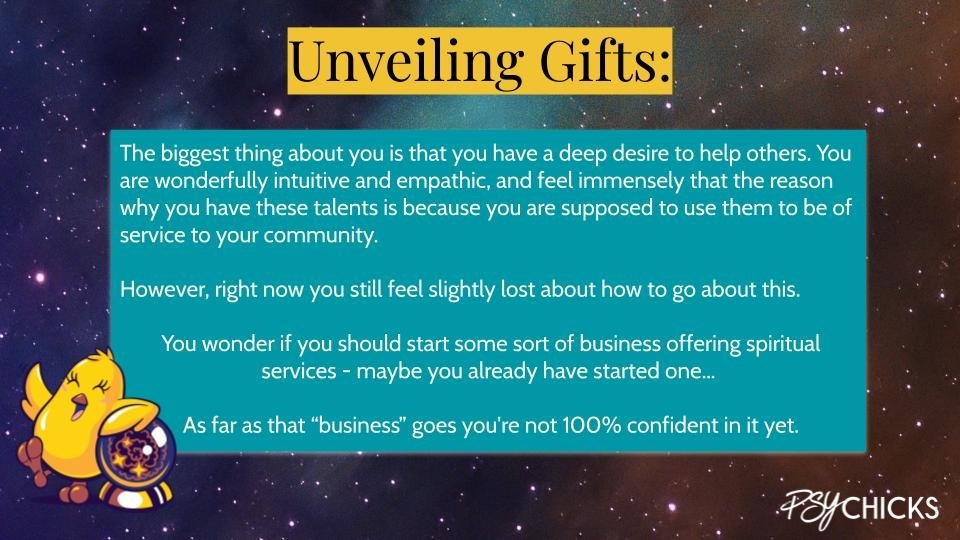 You know that you are on a spiritual path. You haven’t found your purpose yet. You are seeking guidance on how you can bring your special abilities and your other talents together to create a meaningful ( and fulfilling ) life.